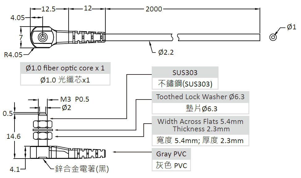 90° M3 耐彎抗拉光纖