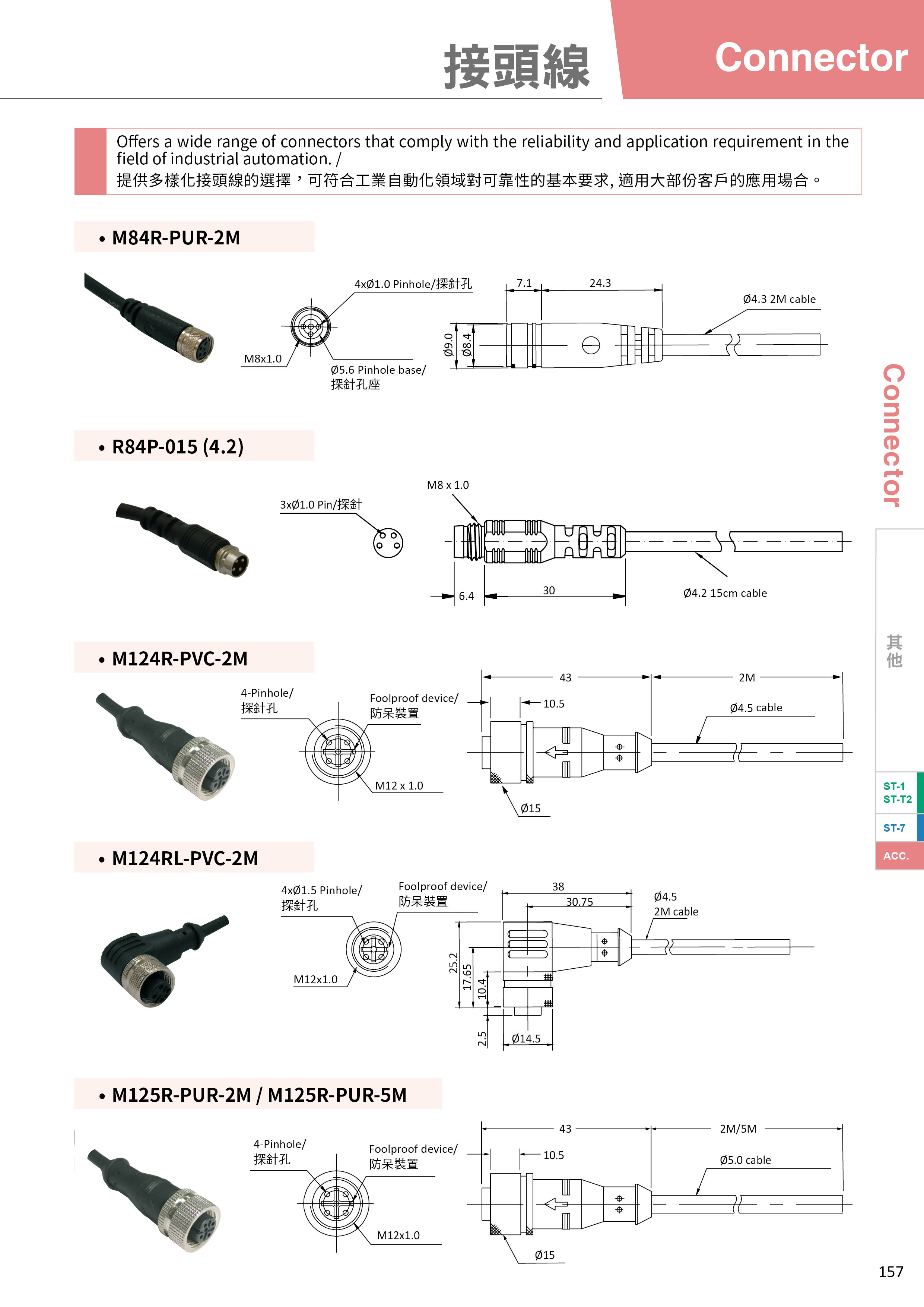 • 提供多樣化接頭線的選擇,可符合工業自動化領域對可靠性的基本要求, 適用大部份客戶的應用場合。