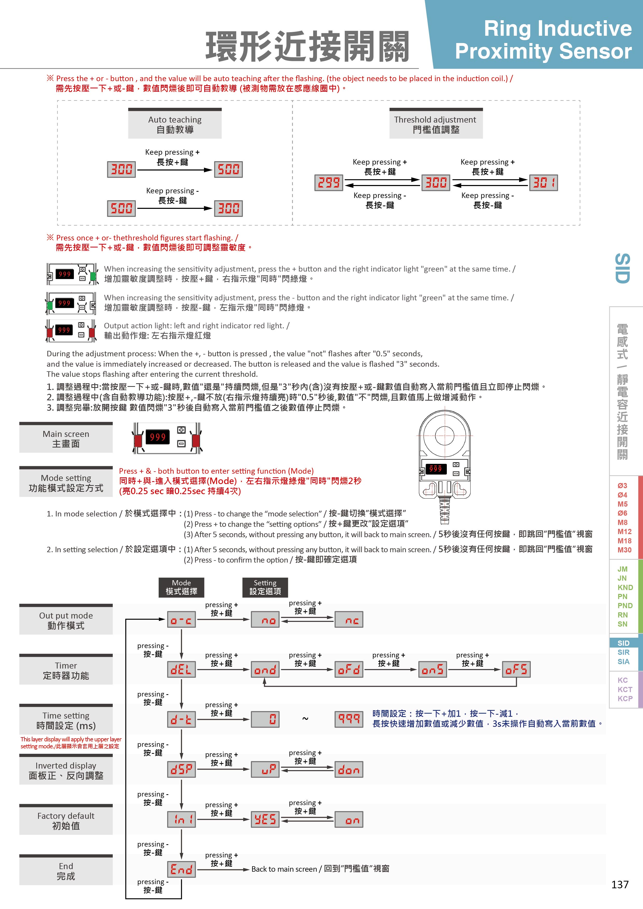 | 輸出模式 | NPN N.O / N.C. , PNP N.C. / N.O. |
