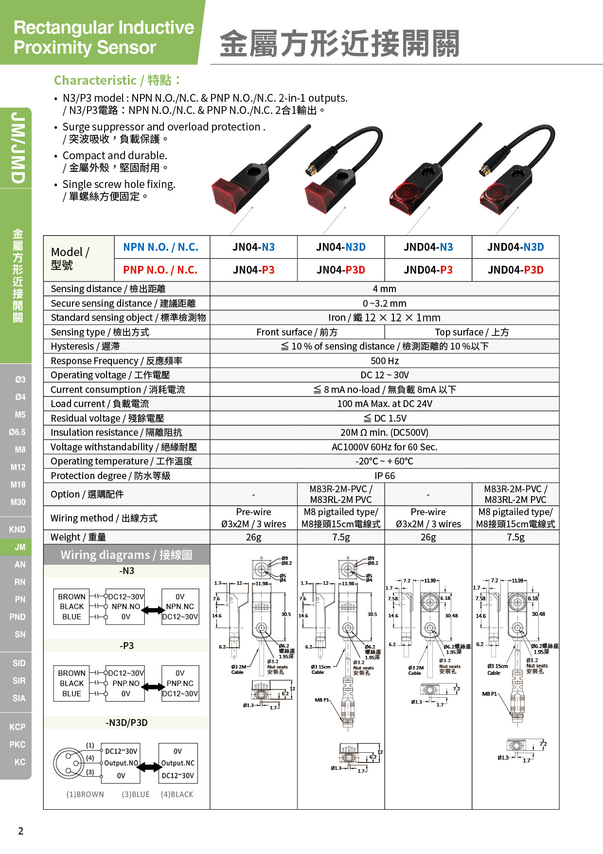 JN04-P3D 金屬方形近接開關