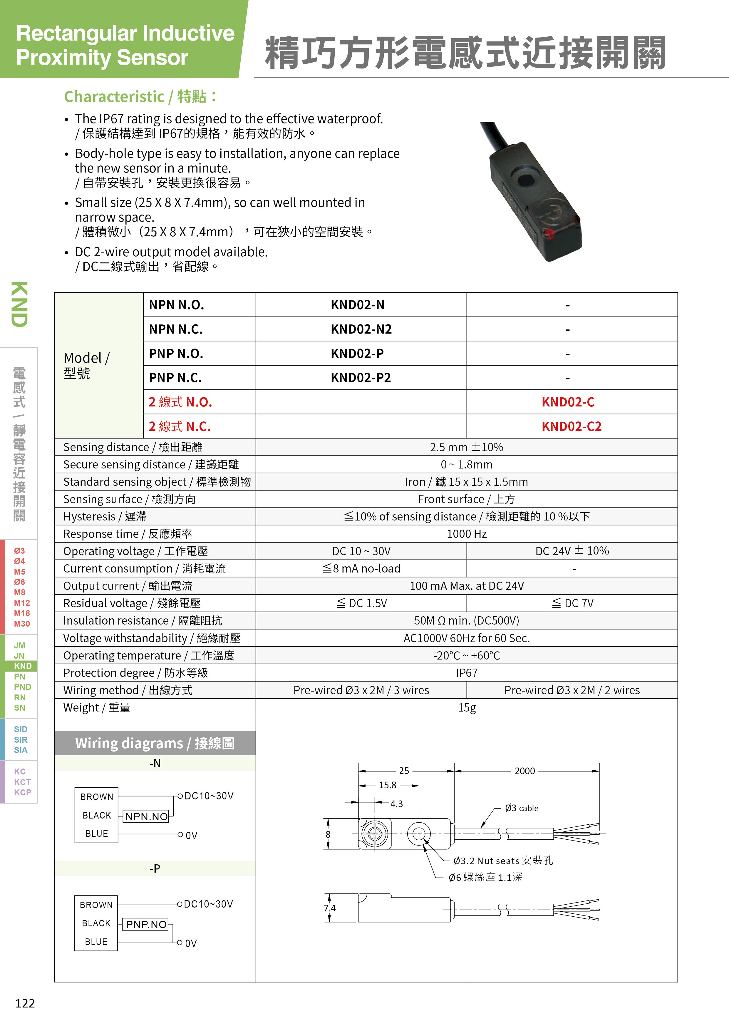 | 遲帶 | ≦10 % of sensing distance / 檢測距離的 10 %以下 |