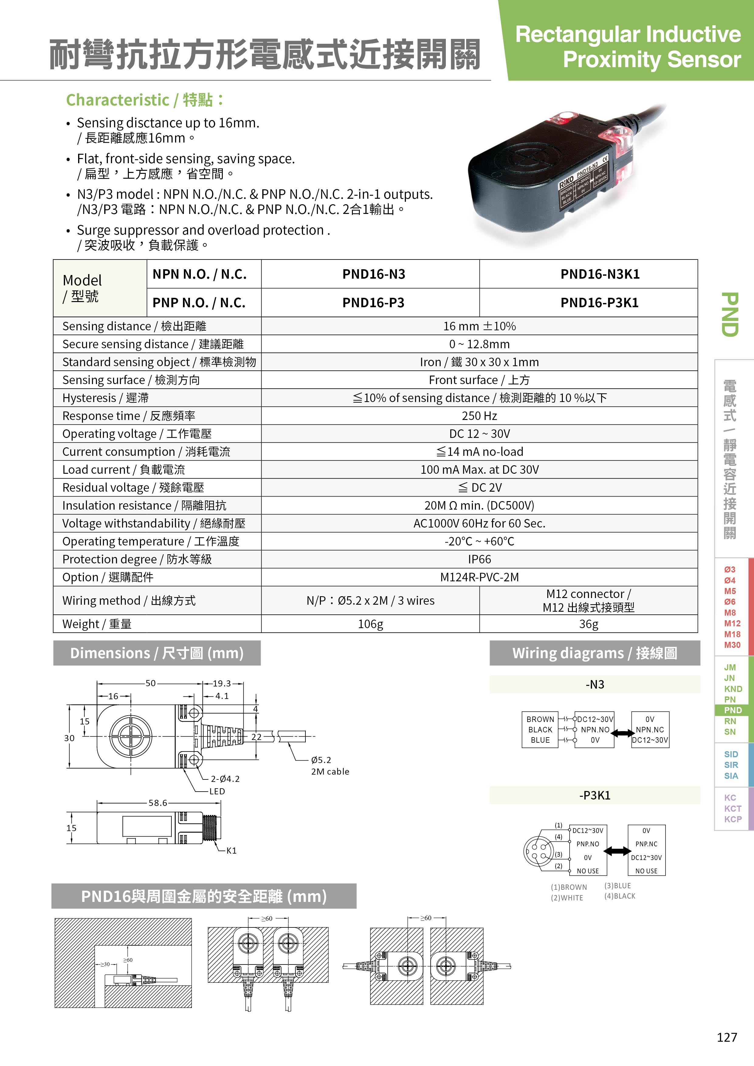 | Model | 耐彎抗拉方形電感式近接開關 |