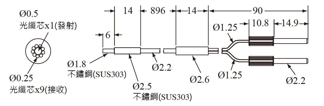 OD=Ø2.2 , ID=Ø0.5x1 / Ø0.25x9