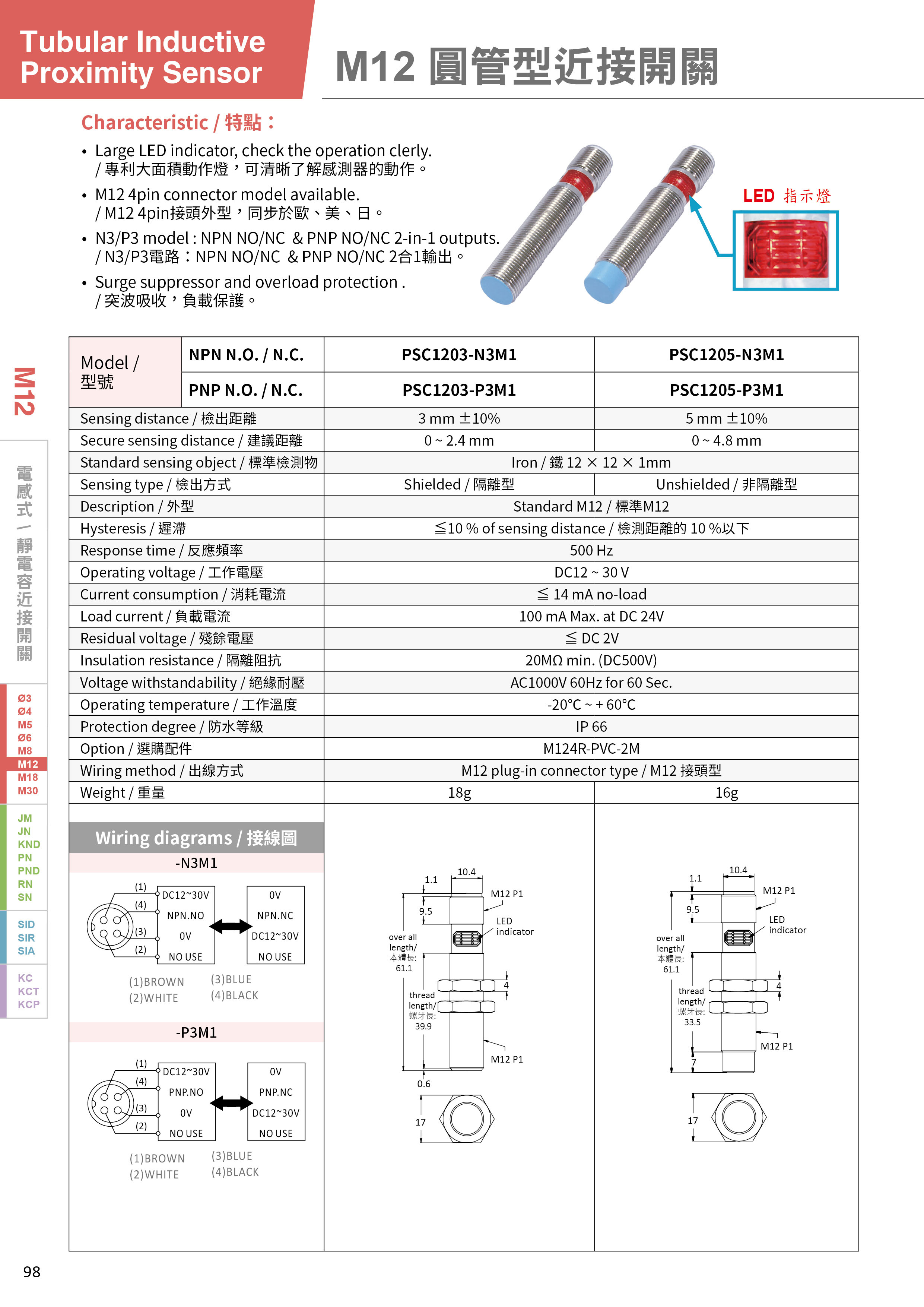 | 遲帶 | ≦ 10 % of sensing distance / 檢測距離的10%以下 |