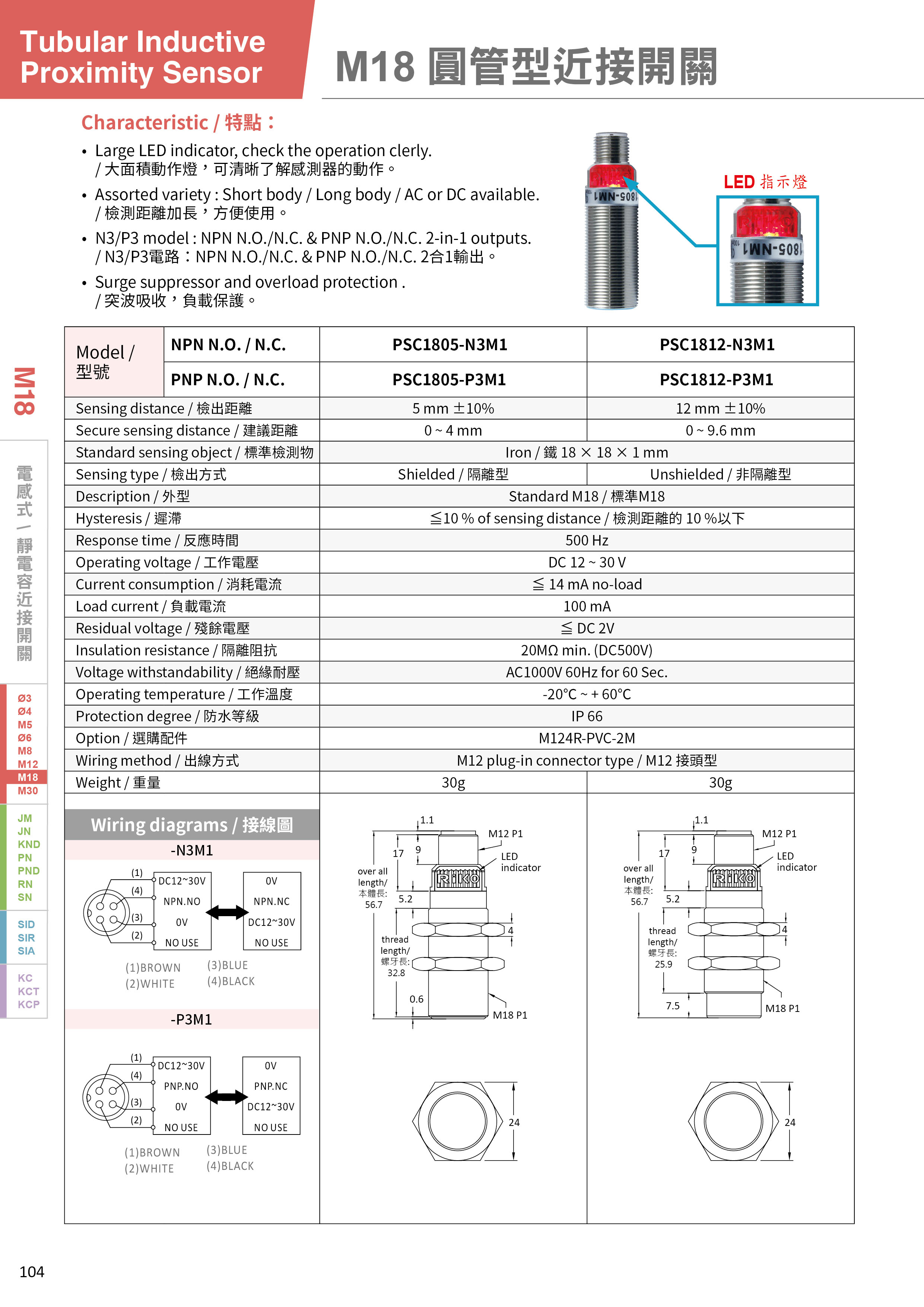 | 遲帶 | ≦ 10 % of sensing distance / 檢測距離的10%以下 |