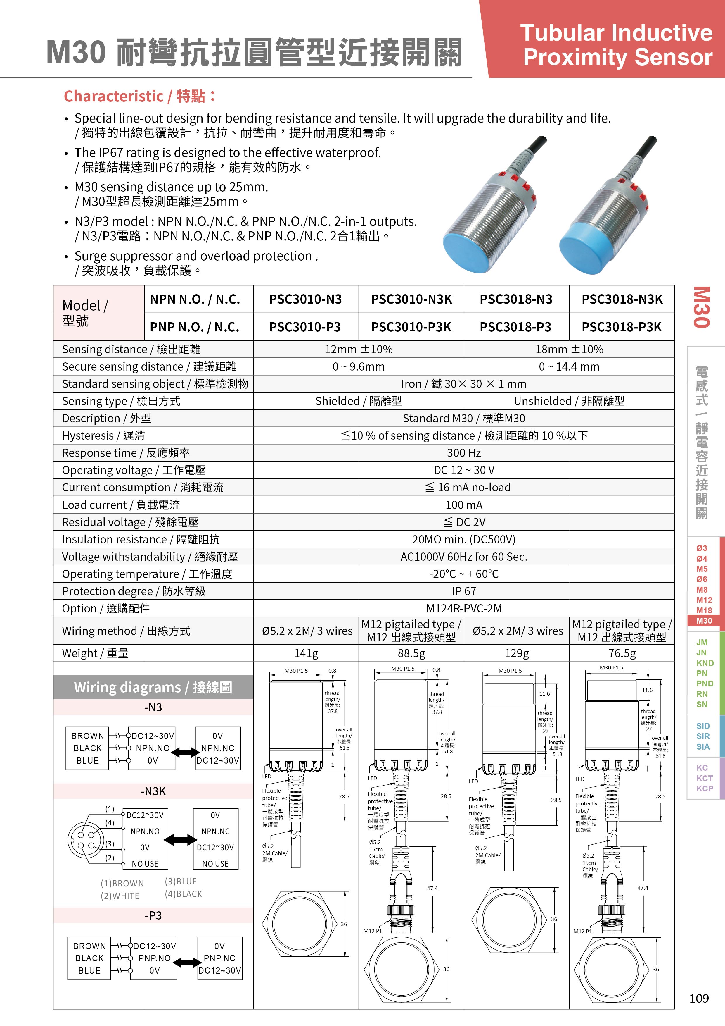 • N3/P3 電路 : NPN N.O./N.C. & PNP N.O./N.C. 2合1輸出。