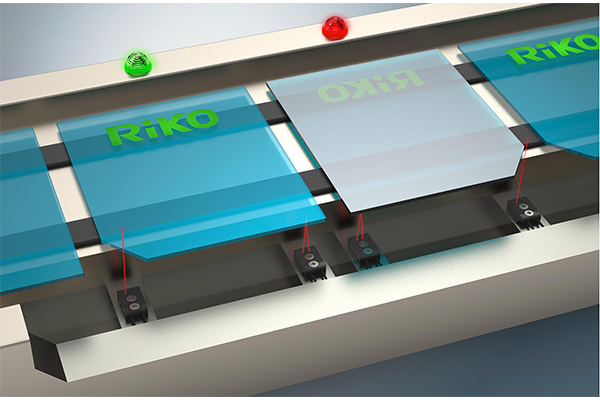 FRB-38V-20,特殊型塑膠光纖感測器,檢距1-6mm尺寸小(13x20x5)固定出光角度,用兩組光纖檢測缺角方向,以判定正反面。
