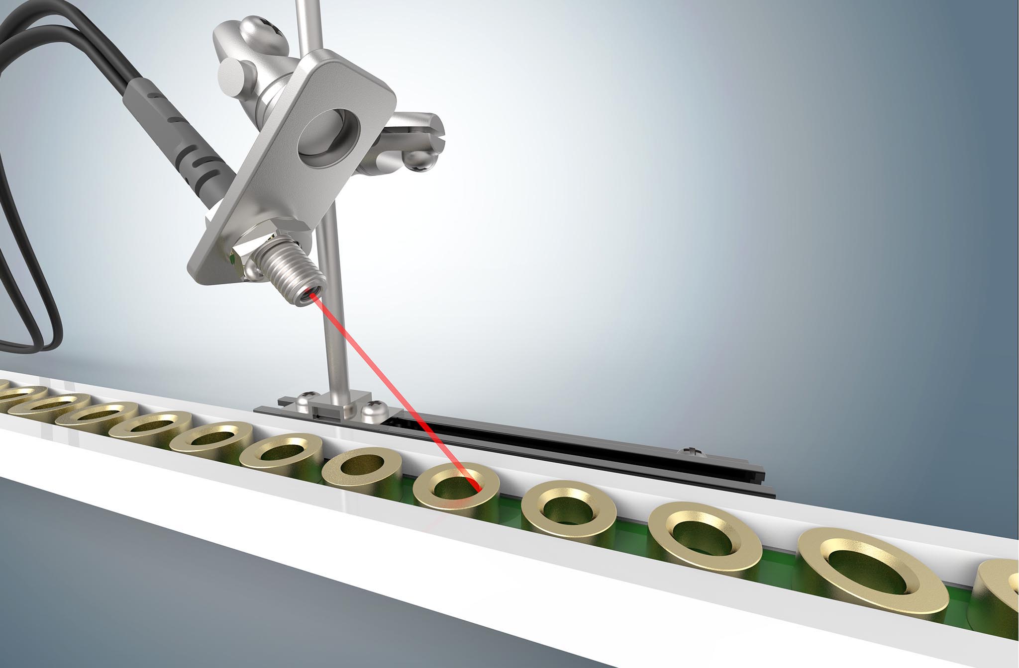 PRC-620-L35,為M6內含鏡頭光纖感測器,在距離3cm高時,光點Ø3.5mm適用在震動盤上檢測螺母(10x10mm)有無倒角加工及一般情況下檢測小物件。