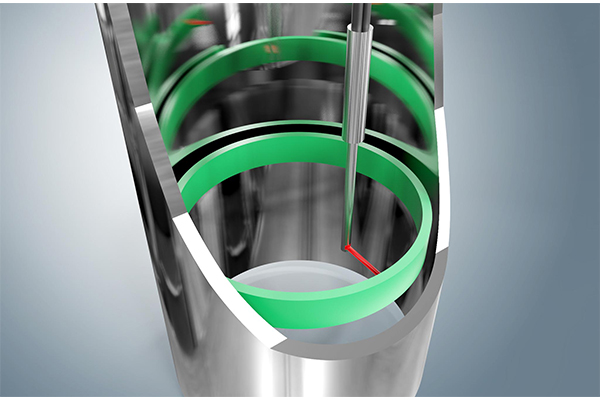 檢測案例: 高度150mm直徑15mm中空金屬桶,內置綠色橡膠墊,進行狹小縫隙中檢測。