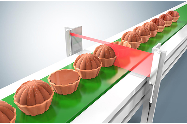 PT-100ML-20,區域型光纖感測器,利用多點反饋特性,可檢查輸送帶上不規則形狀或大小不一的物體計數與不良品檢出。