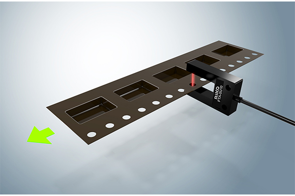 測量案例:寬度20mm、厚度0.5mm電子零件料帶,進行電子零件料帶定位檢測。