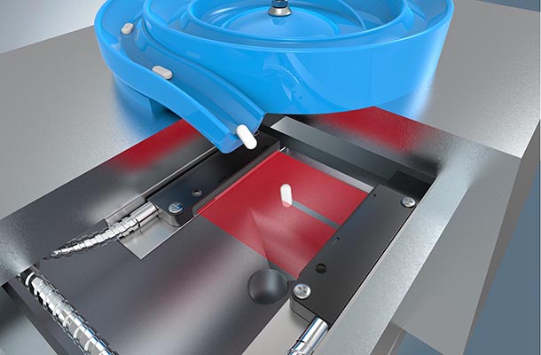 檢測案例: 感測不規則掉落的藥碇(2x18mm)數粒。