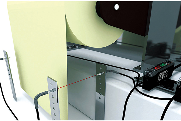 PT-420-B1對照型光纖感測器,檢測紙張邊緣。