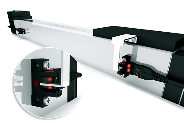 U型溝槽寬福6mm,防干擾電路設計可減少因環境的油汙,震動造成的誤動作,當光電素子被機構上的檔片遮蔽判斷滑軌到達定位點,RX系列光電素子,有16種安裝固定方式供選用。