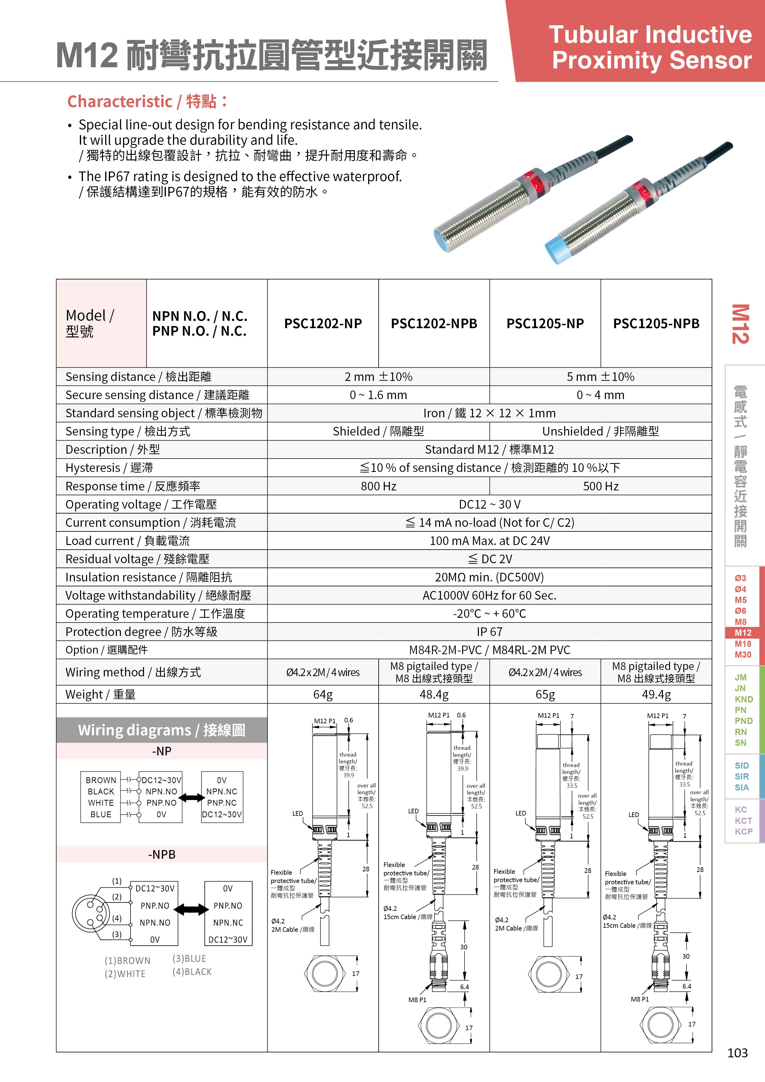 | 遲帶 | ≦ 10 % of sensing distance / 檢測距離的10%以下 |